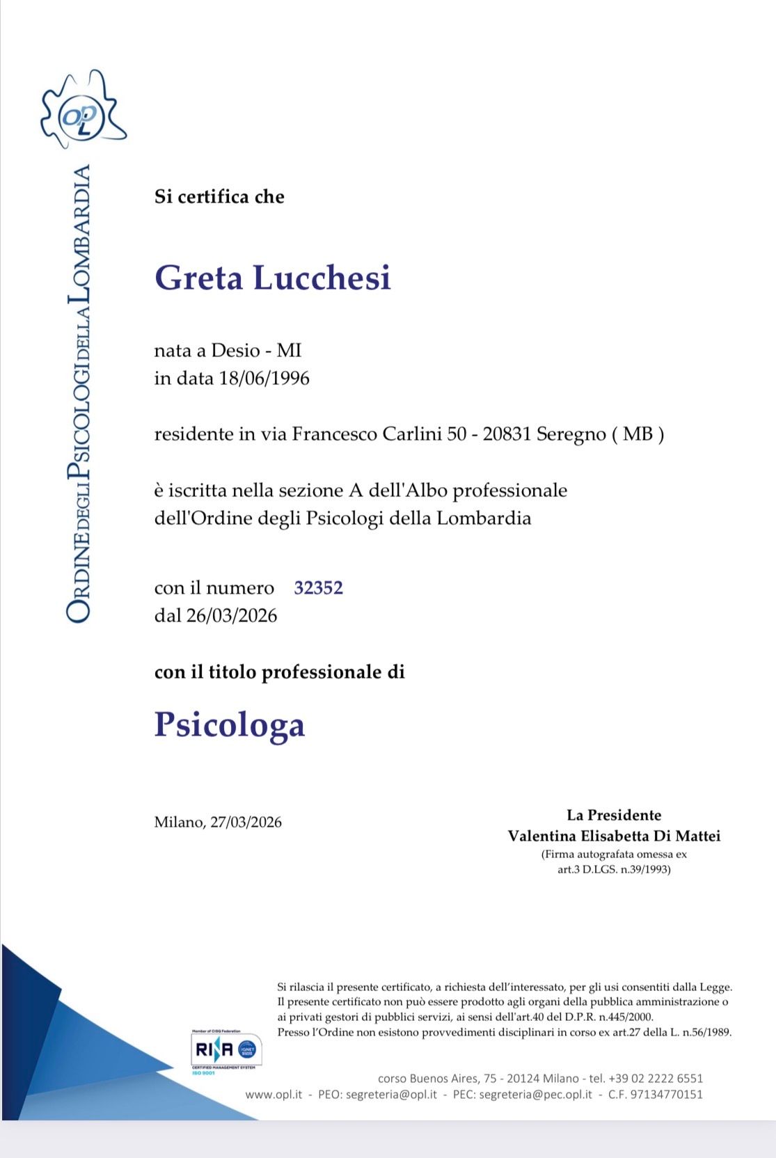 Sono una psicologa specializzata in benessere psicologico e relazionale. Accompagno le persone in percorsi di comprensione di sé, gestione delle difficoltà emotive e cambiamento. Il mio approccio è centrato sulla persona e sul significato unico della sua esperienza. Offro uno spazio di ascolto autentico, senza giudizio, in cui poter essere te stesso. Il mio obiettivo è accompagnarti, passo dopo passo, nel trovare nuove prospettive e costruire un equilibrio più sostenibile per te.
